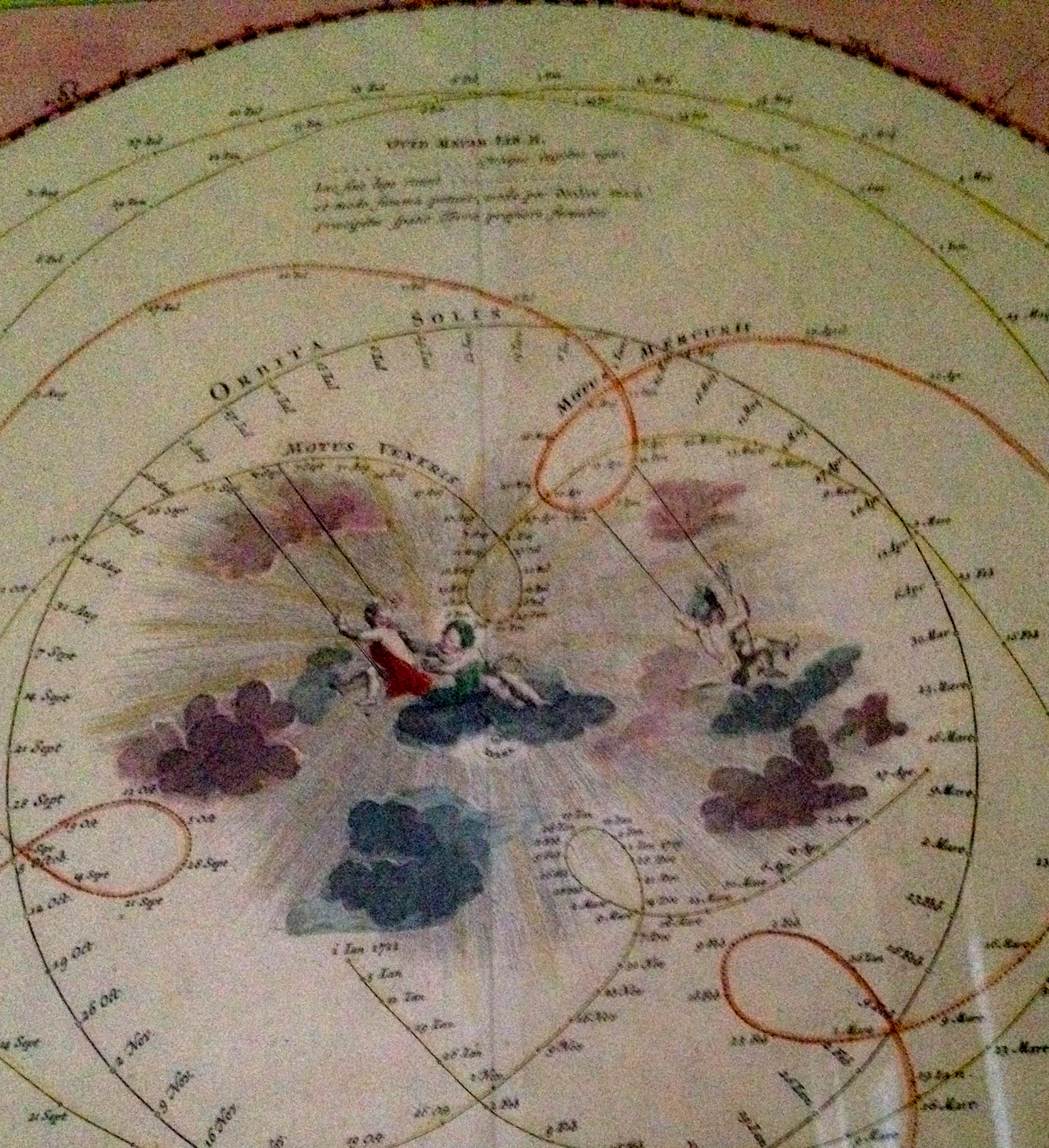 Das Bild zeigt die verschlungenen Planetenbewegungen nach den Berechnungen des Astronomen Tycho de Brahe. Doch so beschwingt fröhlich, wie sich der Barock den Himmel vorgestellt hat, ging’s auch damals dort nicht zu.